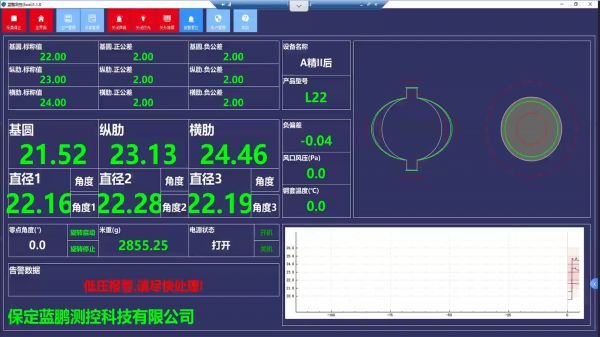 10)測(cè)量數(shù)據(jù)“超差”、測(cè)徑儀溫度“超溫”、風(fēng)機(jī)壓力過低自動(dòng)報(bào)警功能。
