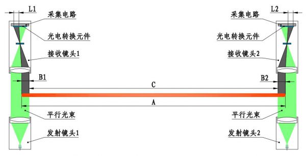 設(shè)備采用雙測頭測寬原理對(duì)板材的寬度進(jìn)行測量,測頭豎直布置,可測量板面呈水平狀態(tài)下通過的板材寬度。測寬儀的雙測頭分別獨(dú)立設(shè)置在套滑臺(tái)模組上,且每個(gè)測頭處增設(shè)廣角測頭,通過廣角測頭監(jiān)測的板材邊緣位置調(diào)整寬度測頭的位置。測寬儀主要配置上位機(jī)控制系統(tǒng)、外接LED顯示屏、高壓離心風(fēng)機(jī)等,可增配嵌入式智能模塊。